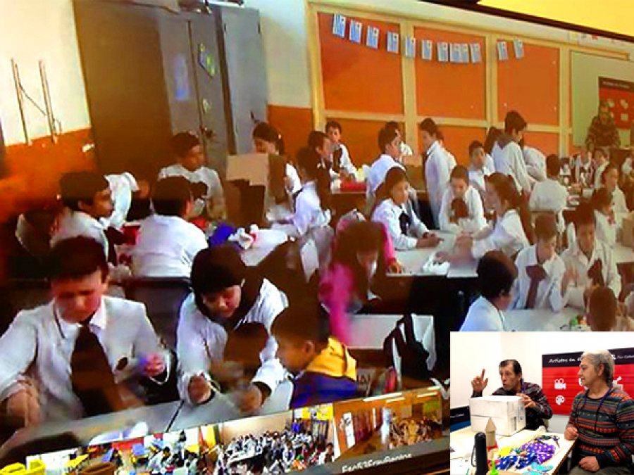 Se trabaja a partir de la plataforma CREA, en la que estudiantes y docentes se aproximan al proceso creativo de los artistas para luego tener dos instancias de videoconferencia en la que participan varias instituciones educativas del país en simultáneo.