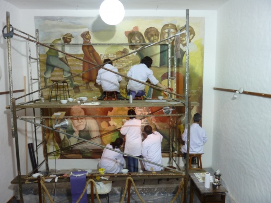 En el marco del proyecto "Función social del muralismo uruguayo del siglo XX como vehículo y modelo de activación patrimonial sustentable. Descentralización, identidad y memoria", un equipo integrado por restauradores de la Universidad Politécnica de Valencia y del Taller de Restauración de la Comisión del Patrimonio Cultural de la Nación trabajó sobre la obra realizada en el año 1936 en dónde entonces funcionaba el Liceo Departamental. Actualmente el edificio alberga a la Casa de la Cultura de la Intendencia de Colonia.